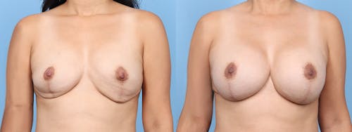 Breast implant revision, or implant exchange, is a procedure for patients who wish to change the appearance of their initial breast implants. Reasons for implant exchange vary and can include a change in body shape, evolving aesthetic goals, a desire to switch implant types, or issues with the current implants, such as capsular contracture. Breast revision surgery at Tucson Plastic Surgery can address various aesthetic concerns, such as restoring fullness in the upper breast, lifting sagging breasts, smoothing implant rippling, correcting asymmetry, and more.